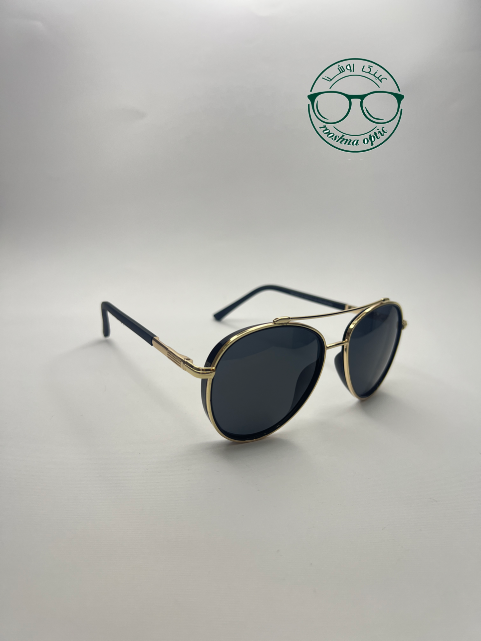 عینک آفتابی از برند Luciano مناسب اقایان و خانم های شیک پوش عدسی UV400 دور طلایی با لولای فنری و جنس فریم فلزی