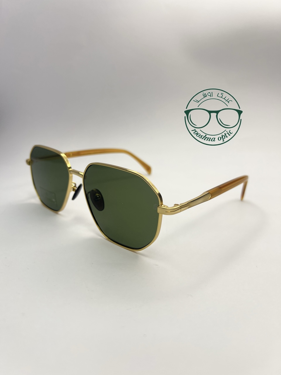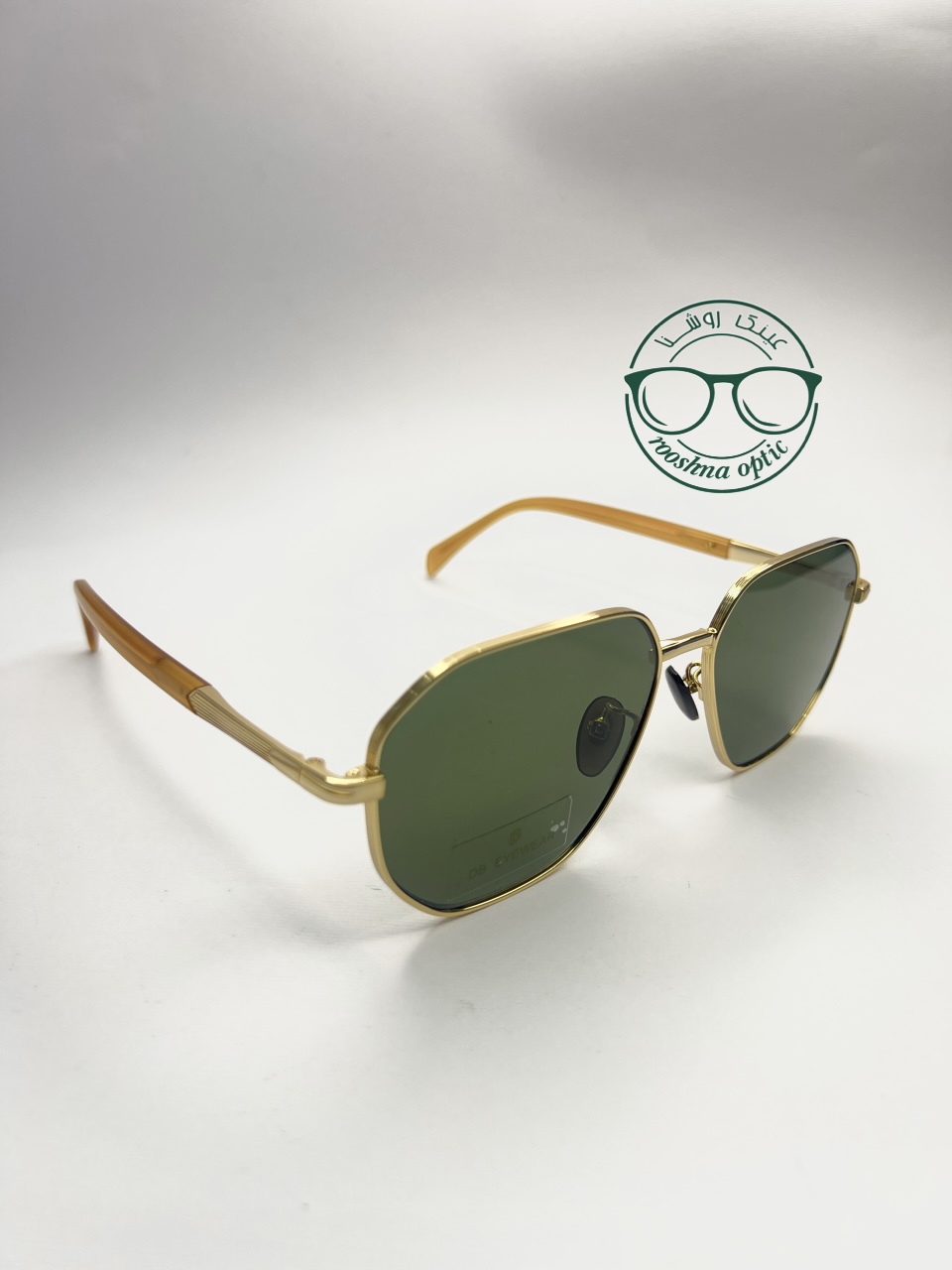 عینک افتابی اسپرت از برند دیویدبکام بسیار شیک و جذاب مستر کوالیتی با کیفیت بسیار بالا فریم شیک و طلایی و عدسی سبز